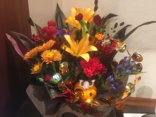特別なカーネーションと言う訳ではないのですが、カーネーションは大きく3種類に分けられていて、その中の一種だそうです。ハロウィン仕様の飾りも付いていて華やかです^_^今週も鉄板焼 野澤ご来店お待ちしてます^ ^