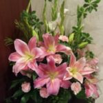 今週も素敵なお花が届きました。 今週はピンクを基調として色鮮やかな仕上がりになっています。 大きなユリを中心に…