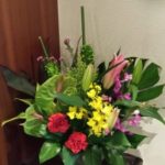 今週も素敵なお花が届きました。 緑に囲まれ、黄・赤・ピンクが鮮やかに映えますね。   …